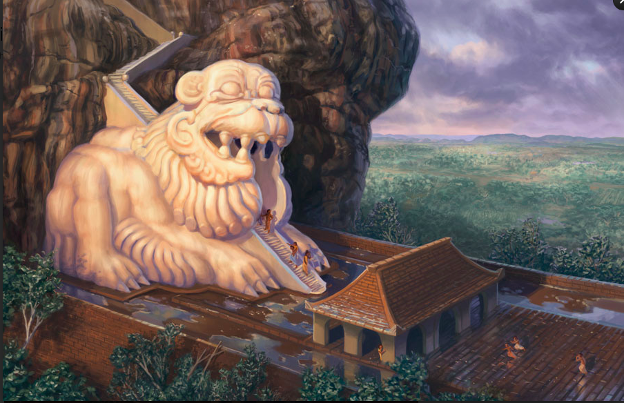 Po několika dalších strmých schodech se konečně dostáváme na prostornou Lví terasu, poslední oddechovku před vystoupáním na samý vrchol. Zcela nečekaně se tu přede mnou objevuji dvě velikánské zvířecí tlapy s ostrými drápy vytesanými ze skály a mezi nimi kus původního kamenného schodiště. Tím se kdysi vstupovalo do tlamy gigantického kamenného lva, jenž střežil vchod do paláce. Ačkoliv lvi se na Srí Lance nikdy nevyskytovali, v dobách Sinhálských králů představovali nejvyšší symbol moci a prestiže. A právě ze Lví brány vzešel název celého Sigiriyského komplexu.