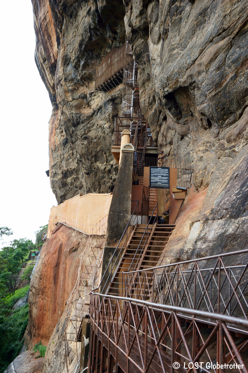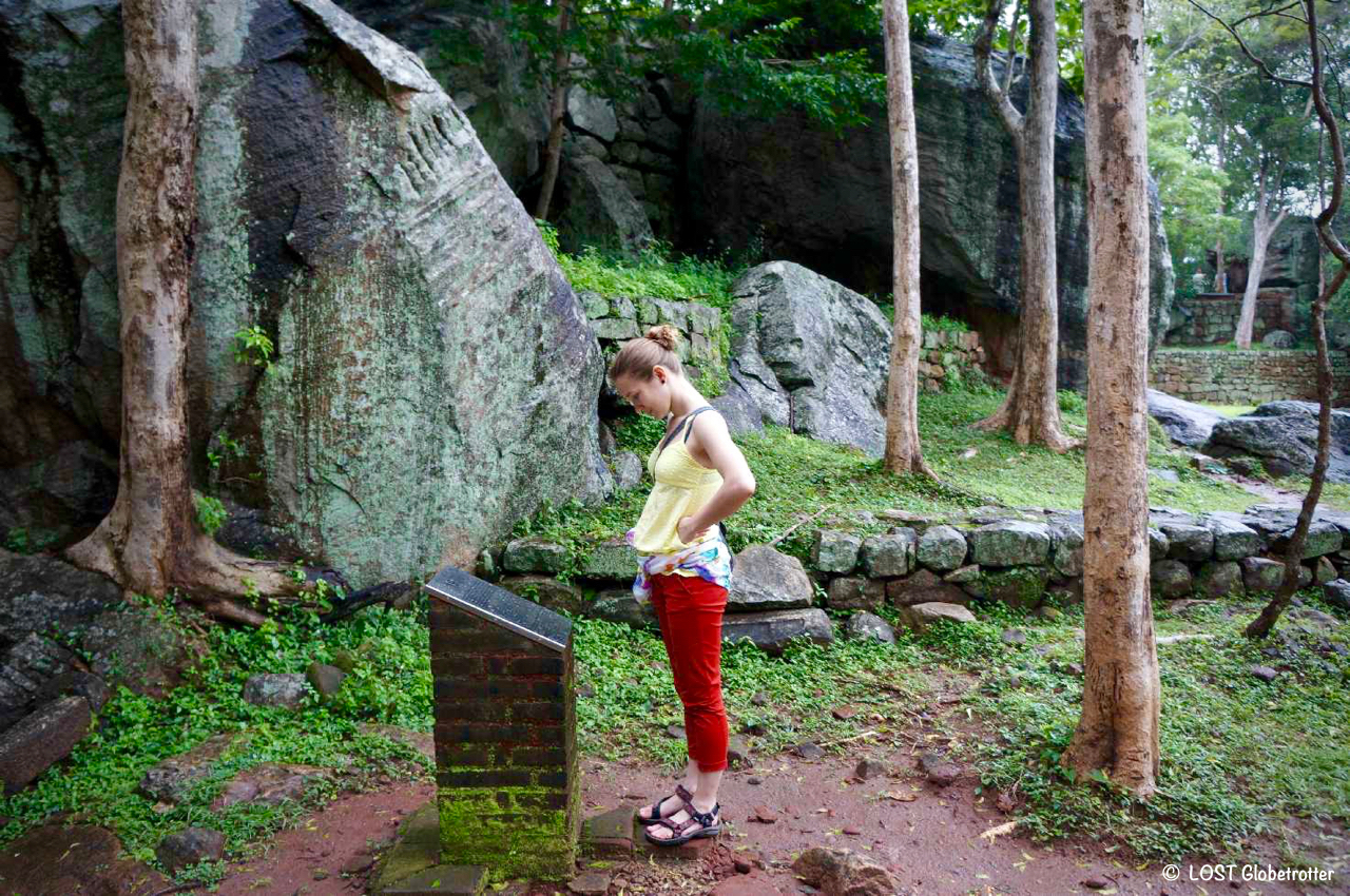 Srílančané věří, že na vrcholu skály stával kdysi dávno (přesněji v 5. století) královský palác, novodobé archeologické nálezy ale nasvědčují tomu, že tu býval klášter. Stejně tak se proslýchá i třetí možná varianta, a tou je palác neřesti. Nejspíš proto, že masiv v sobě ukrývá jeskynní fresky nebeských krásek, tedy vlastně srílanských žen s odhalenými bujnými tvary 🙂 . Nezbývá mi tedy než to celé prozkoumat na vlastní pěst, přesněji na vlastní oči.